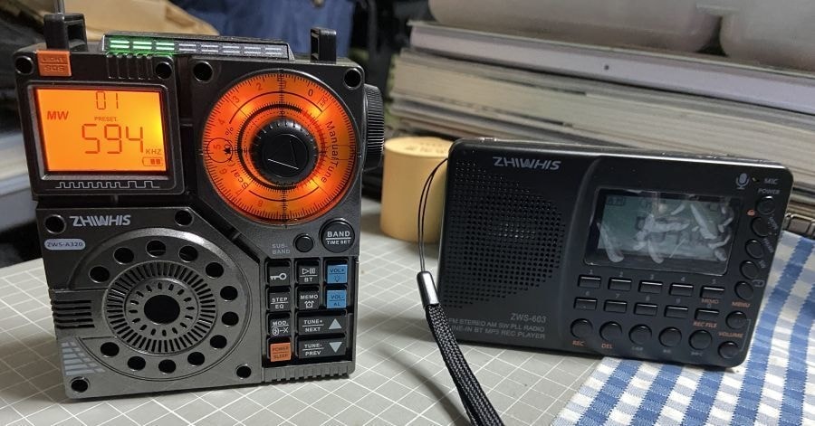 そんな中、その中国製でブランドも中国のZHIWHISというメーカーのラジオが最近デザインや性能もレベルアップしてきており、いつのまにか2台になりました。ZWS-A320(むかしのナショナルさんのクーガ7に似ています)とZWS-603(シンプルで使いやすくお値段も手ごろです)。