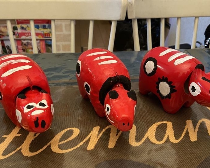 戊辰戦争や会津什の掟のことはまだ難しいものの、修学旅行で体験した会津での物づくり体験の一つ、赤べこ絵付けの出来具合がそれぞれ個性豊かで面白い。