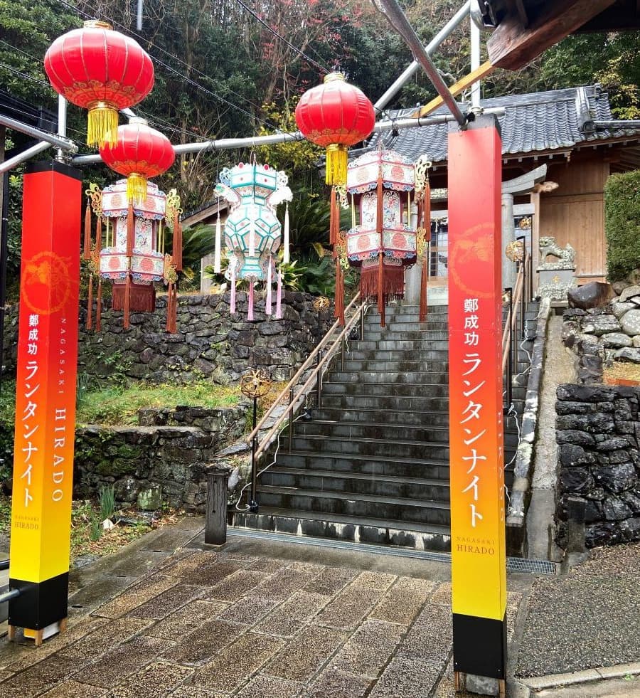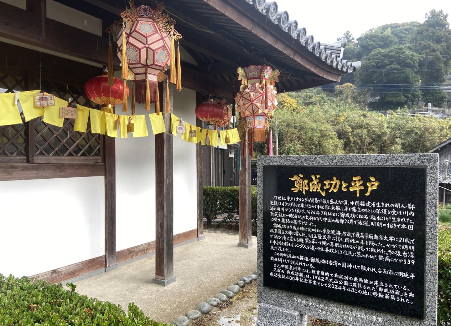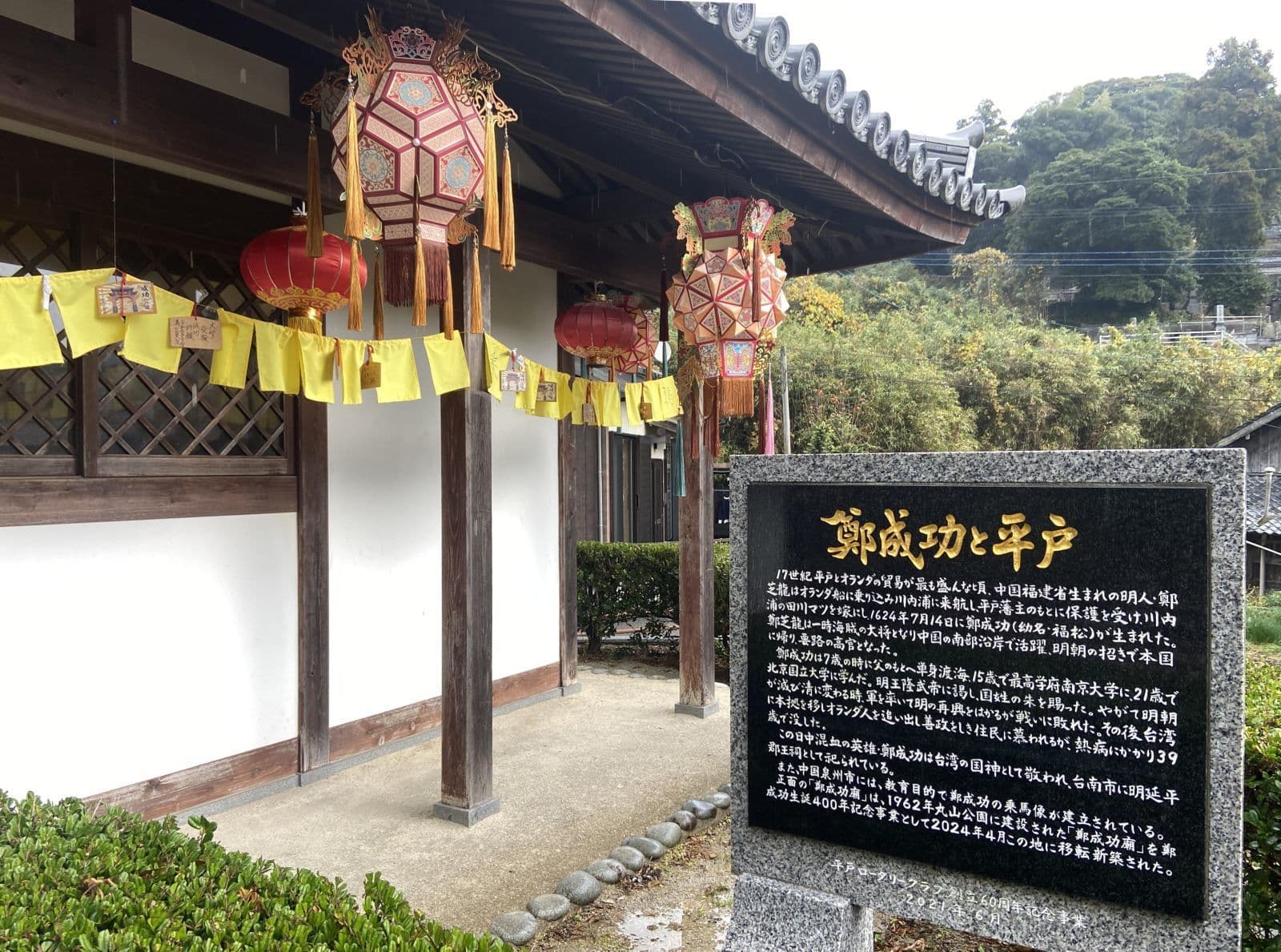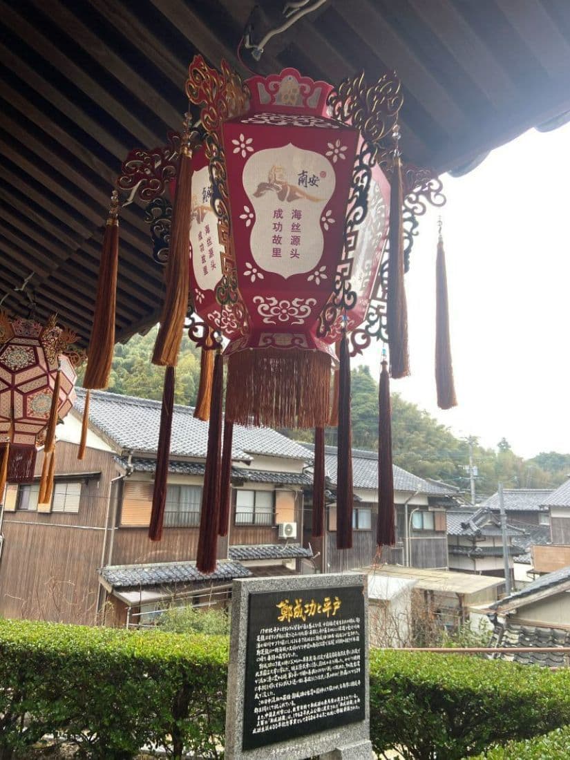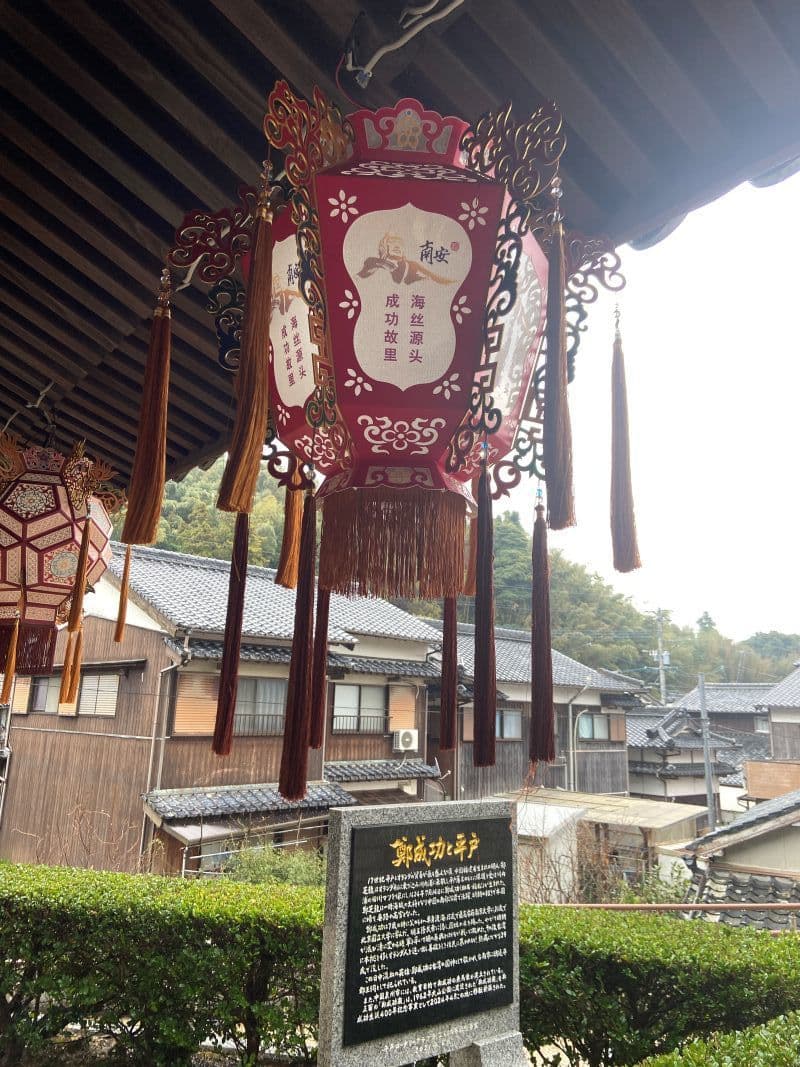 それは鄭成功記念館です。雨の中を平戸大橋から千里が浜を進み、長崎の友人が勧めてくれた川内かまぼこのお店が立ち並ぶ辺りをすぎたあたりに、懐かしい香港で見かけたような風景に出くわしました。中国や台湾から取り寄せたという数々のランタンとその奥にある廟です。